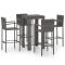 bar d'extérieur 5 pcs accoudoir Résine tressée GrisCet ensemble élégant de bar de jardin vous permet de passer des moments agréables et confortables avec votre famille et vos amis. La table de bar est soutenue par un cadre en acier enduit de poudre, ce qui la rend stable et robuste. Le dessus de table est idéal pour placer des boissons, de la nourriture ou des objets décoratifs. Les tabourets ont une construction solide de cadre en acier et sont faits de résine tressée résistante aux intempéries, assurant la stabilité et sont faciles à déplacer. Le repose-pieds ajoute également un confort d'assise supplémentaire pour le tabouret. Maximum 110 kg par siège.