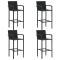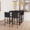 bar d'extérieur 5 pcs accoudoir Résine tressée NoirCet ensemble élégant de bar de jardin vous permet de passer des moments agréables et confortables avec votre famille et vos amis. La table de bar est soutenue par un cadre en acier enduit de poudre, ce qui la rend stable et robuste. Le dessus de table est idéal pour placer des boissons, de la nourriture ou des objets décoratifs. Les tabourets ont une construction solide de cadre en acier et sont faits de résine tressée résistante aux intempéries, assurant la stabilité et sont faciles à déplacer. Le repose-pieds ajoute également un confort d'assise supplémentaire pour le tabouret. Maximum 110 kg par siège.