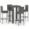 bar d'extérieur 5 pcs coussins Résine tressée GrisCet ensemble élégant de bar de jardin vous permet de passer des moments agréables et confortables avec votre famille et vos amis. La table de bar est soutenue par un cadre en acier enduit de poudre, ce qui la rend stable et robuste. Le dessus de table carré est idéal pour placer des boissons, de la nourriture ou des objets décoratifs. Les tabourets ont une construction solide de cadre en acier et sont faits de résine tressée résistante aux intempéries, assurant la stabilité et sont faciles à déplacer. Le coussin et le repose-pied ajoutent également du confort d'assise supplémentaire au tabouret. La housse de coussin en polyester avec fermeture éclair dissimulée le rend facile à nettoyer. Maximum 110 kg par siège. Soyez conscient du risque de feu ouvert et d'autres sources de forte chaleur à proximité de l'appareil.