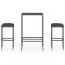 bar de jardin 3 pcs et coussins Résine tressée GrisCet élégant ensemble de bar de jardin offre un endroit agréable et confortable afin que vous puissiez profiter du temps avec votre famille et vos amis. Cette table de comptoir dispose d'un cadre en acier enduit de poudre recouvert de résine tressée résistante à l'eau, assurant des années d'utilisation à l'extérieur. De plus, le dessus de table en verre trempé facilite le nettoyage. Les tabourets ont un solide cadre en acier et sont fabriqués en résine tressée résistante aux intempéries, ce qui garantit leur stabilité et leur facilité de déplacement. Le coussin d'assise et le repose-pied intégré ajoutent également au confort d'assise du tabouret. Remarque : afin de prolonger la durée de vie des meubles d'extérieur, nous vous recommandons de les protéger avec une housse imperméable. Maximum 110 kg par siège. Soyez conscient du risque de feu ouvert et d'autres sources de forte chaleur à proximité de l'appareil.