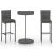 bar de jardin 3 pcs et coussins Résine tressée GrisCet ensemble élégant de bar de jardin vous permet de passer des moments agréables et confortables avec votre famille et vos amis. La table de bar est soutenue par un cadre en acier enduit de poudre, ce qui la rend stable et robuste. Le dessus de table rond est idéal pour placer des boissons, de la nourriture ou des objets décoratifs. Les tabourets ont une construction solide de cadre en acier et sont faits de résine tressée résistante aux intempéries, assurant la stabilité et sont faciles à déplacer. Le coussin et le repose-pied ajoutent également du confort d'assise supplémentaire au tabouret. La housse de coussin en polyester avec fermeture éclair dissimulée le rend facile à nettoyer. Maximum 110 kg par siège. Soyez conscient du risque de feu ouvert et d'autres sources de forte chaleur à proximité de l'appareil.