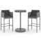 bar de jardin 3 pcs et coussins Résine tressée GrisCet ensemble élégant de bar de jardin vous permet de passer des moments agréables et confortables avec votre famille et vos amis. Fabriqué en rotin PE résistant aux intempéries et à l'eau, cet ensemble de bar d'extérieur est facile à nettoyer, résistant et adapté à un usage quotidien. Le cadre en acier revêtu de poudre rend la table et les tabourets robustes et durables. Le plateau rond est idéal pour poser des boissons, de la nourriture ou des objets décoratifs. Le repose-pieds et les coussins ajoutent un confort d'assise supplémentaire au tabouret. Grâce à la construction légère, tous les éléments sont faciles à déplacer. Remarque : afin de prolonger la durée de vie des meubles d'extérieur, nous vous recommandons de les protéger avec une housse imperméable. Maximum 110 kg par siège. Soyez conscient du risque de feu ouvert et d'autres sources de forte chaleur à proximité de l'appareil.