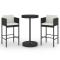 bar de jardin 3 pcs et coussins Résine tressée NoirCet ensemble élégant de bar de jardin vous permet de passer des moments agréables et confortables avec votre famille et vos amis. Fabriqué en rotin PE résistant aux intempéries et à l'eau, cet ensemble de bar d'extérieur est facile à nettoyer, résistant et adapté à un usage quotidien. Le cadre en acier revêtu de poudre rend la table et les tabourets robustes et durables. Le plateau rond est idéal pour poser des boissons, de la nourriture ou des objets décoratifs. Le repose-pieds et les coussins ajoutent un confort d'assise supplémentaire au tabouret. Grâce à la construction légère, tous les éléments sont faciles à déplacer. Remarque : afin de prolonger la durée de vie des meubles d'extérieur, nous vous recommandons de les protéger avec une housse imperméable. Maximum 110 kg par siège. Soyez conscient du risque de feu ouvert et d'autres sources de forte chaleur à proximité de l'appareil.