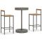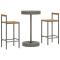 bar jardin 3 pcs gris poly rotin/bois massif acaciaCet ensemble de bar de jardin tendance, combinant à la fois style et fonctionnalité, est sûrement destiné à être la pièce maîtresse de votre jardin, terrasse et de tout autre espace de vie. Matériau résistant aux intempéries : la résine tressée, également connue sous le nom de rotin poly, résiste aux intempéries et est facile à nettoyer. Elle reste belle à l'extérieur pendant une longue période. Elle offre une excellente qualité, commodité et un aspect esthétique.Assise confortable : le tabouret de bar est conçu avec un repose-pied intégré pour vous offrir une expérience d'assise confortable. L'assise en bois confère au tabouret un aspect naturel et agréable tout en assurant sa stabilité.Table pratique : la table de bar ronde est idéale pour accueillir vos boissons, vos snacks et vos décorations préférées.Cadre robuste et stable : les cadres en acier enduit de poudre rendent l'ensemble de pub robuste et stable pour une utilisation quotidienne à l'extérieur.Applications larges : la table et les tabourets de bar, avec leur design remarquable, créent un aspect général agréable qui s'intègre sans effort dans n'importe quel décor. Bon à savoir :Pour faciliter au maximum le montage, chaque produit est livré avec des instructions.Remarque :Pour que vos meubles d'extérieur restent beaux, nous vous recommandons de les protéger avec une housse imperméable. Maximum 110 kg par siège.