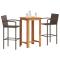 bar de jardin 3 pcs marron bois massif acacia rotinCet ensemble de bar de jardin, au design élégant et contemporain, sera un excellent choix pour manger ou vous détendre dans le jardin. Matériau durable : la résine tressée, également connue sous le nom de poly rotin, est un matériau synthétique solide et nécessitant peu d'entretien qui ressemble au rotin naturel. Elle est légère, facile à nettoyer et couramment utilisée pour les produits d'extérieur en raison de sa durabilité et de ses propriétés de résistance aux intempéries. Fabriqués en résine tressée légère, ces tabourets de bar sont robustes et faciles à déplacer. Plateau de table robuste : le bois d'acacia massif est un beau matériau naturel. Le bois d'acacia est un bois dur tropical, dense, robuste et durable. Fabriquée en bois d'acacia massif, cette table de bar est robuste et stable. Vous pouvez y placer collations, boissons et toutes vos décorations préférées. Expérience d'assise confortable : les repose-pieds intégrés ajoutent un confort d'assise supplémentaire pour le tabouret. Bon à savoir :Pour que vos meubles d'extérieur restent beaux, nous vous recommandons de les protéger avec une housse imperméable. Maximum 110 kg par siège.