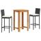 bar de jardin 3 pcs noir bois massif acacia rotinCet ensemble de bar de jardin, au design élégant et contemporain, sera un excellent choix pour manger ou vous détendre dans le jardin. Matériau durable : la résine tressée, également connue sous le nom de poly rotin, est un matériau synthétique solide et nécessitant peu d'entretien qui ressemble au rotin naturel. Elle est légère, facile à nettoyer et couramment utilisée pour les produits d'extérieur en raison de sa durabilité et de ses propriétés de résistance aux intempéries. Fabriqués en résine tressée légère, ces tabourets de bar sont robustes et faciles à déplacer. Plateau de table robuste : le bois d'acacia massif est un beau matériau naturel. Le bois d'acacia est un bois dur tropical, dense, robuste et durable. Fabriquée en bois d'acacia massif, cette table de bar est robuste et stable. Vous pouvez y placer collations, boissons et toutes vos décorations préférées. Expérience d'assise confortable : les coussins d'assise bien rembourrés et les repose-pieds intégrés ajoutent un confort d'assise supplémentaire pour le tabouret. Housse amovible et lavable : ces coussins de siège sont dotés de housses amovibles pour un lavage et un entretien faciles. Bon à savoir :Pour que vos meubles d'extérieur restent beaux, nous vous recommandons de les protéger avec une housse imperméable. Maximum 110 kg par siège. Soyez conscient du risque de feu ouvert et d'autres sources de forte chaleur à proximité de l'appareil.