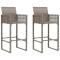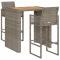 bar de jardin 3 pcs sans coussins gris poly rotinCet ensemble de bar de jardin tendance, combinant à la fois style et fonctionnalité, est sûrement destiné à être la pièce maîtresse de votre jardin, terrasse et de tout autre espace de vie. Matériau résistant aux intempéries : la résine tressée, également connue sous le nom de rotin poly, résiste aux intempéries et est facile à nettoyer. Elle reste belle à l'extérieur pendant une longue période. Elle offre une excellente qualité, commodité et un aspect esthétique.Assise confortable : le tabouret de bar est conçu avec un dossier et un repose-pieds intégré pour vous offrir une assise confortable. Le coussin de siège bien rembourré offre un confort ultime pendant votre temps assis.Cadre robuste et stable : les cadres en acier enduit de poudre rendent l'ensemble de pub robuste et stable pour une utilisation quotidienne à l'extérieur.Applications larges : la table et le tabouret de bar, avec leur design remarquable, créent un aspect général agréable qui s'intègre sans effort dans n'importe quel décor. Bon à savoir :Pour faciliter au maximum le montage, chaque produit est livré avec des instructions.Remarque :Pour que vos meubles d'extérieur restent beaux, nous vous recommandons de les protéger avec une housse imperméable. Maximum 110 kg par siège.