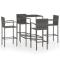 bar de jardin 5 pcs Résine tressée GrisCet ensemble élégant de bar de jardin vous permet de passer des moments agréables et confortables avec votre famille et vos amis. Dotée d'un cadre en acier enduit de poudre recouvert de résine tressée résistante à l'eau, cette table de comptoir garantit des années d'utilisation en extérieur. De plus, le dessus de table en verre trempé facilite le nettoyage. Les tabourets ont une construction solide de cadre en acier et sont fabriqués en résine tressée résistante aux intempéries, ce qui garantit leur stabilité et leur facilité de déplacement. Le dossier, l'accoudoir et le repose-pied intégré ajoutent également au confort d'assise du tabouret. Remarque : afin de prolonger la durée de vie des meubles d'extérieur, nous vous recommandons de les protéger avec une housse imperméable. Maximum 110 kg par siège.