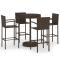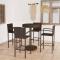 bar de jardin 5 pcs Résine tressée MarronCet ensemble élégant de bar de jardin vous permet de passer des moments agréables et confortables avec votre famille et vos amis. La table de bar est soutenue par un cadre en acier enduit de poudre, ce qui la rend stable et robuste. Le dessus de table rond est idéal pour placer des boissons, de la nourriture ou des objets décoratifs. Les tabourets ont une construction solide de cadre en acier et sont faits de résine tressée résistante aux intempéries, assurant la stabilité et sont faciles à déplacer. Le repose-pied ajoute également au confort d'assise du tabouret. Maximum 110 kg par siège.
