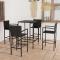 bar de jardin 5 pcs Résine tressée NoirCet élégant ensemble de bar de jardin offre un endroit agréable et confortable afin que vous puissiez profiter du temps avec votre famille et vos amis. Cette table de comptoir dispose d'un cadre en acier enduit de poudre recouvert de résine tressée résistante à l'eau, assurant des années d'utilisation à l'extérieur. De plus, le dessus de table en verre trempé facilite le nettoyage. Les tabourets ont un solide cadre en acier et sont fabriqués en résine tressée résistante aux intempéries, ce qui garantit leur stabilité et leur facilité de déplacement. Le dossier, l'accoudoir et le repose-pied intégré ajoutent également au confort d'assise du tabouret. Remarque : afin de prolonger la durée de vie des meubles d'extérieur, nous vous recommandons de les protéger avec une housse imperméable. Maximum 110 kg par siège.