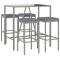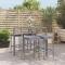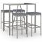 bar de jardin 5 pcs avec coussins gris poly rotinCet ensemble de bar de jardin tendance, combinant à la fois style et fonctionnalité, est sûrement destiné à être la pièce maîtresse de votre jardin, terrasse et de tout autre espace de vie. Matériau résistant aux intempéries : la résine tressée, également connue sous le nom de rotin poly, résiste aux intempéries et est facile à nettoyer. Elle reste belle à l'extérieur pendant une longue période. Elle offre une excellente qualité, commodité et un aspect esthétique.Assise confortable : le tabouret de bar est conçu avec un repose-pieds intégré pour vous offrir une assise confortable. Le coussin de siège bien rembourré offre un confort ultime pendant votre temps assis.Dessus en verre trempé : le dessus est en verre trempé, ce qui le rend facile à nettoyer. De plus, il offre un excellent support pour placer vos boissons, collations et vos décorations préférées.Cadre robuste et stable : les cadres en acier enduit de poudre rendent l'ensemble de pub robuste et stable pour une utilisation quotidienne à l'extérieur.Applications larges : la table et le tabouret de bar, avec leur design remarquable, créent un aspect général agréable qui s'intègre sans effort dans n'importe quel décor. Bon à savoir :Pour faciliter au maximum le montage, chaque produit est livré avec des instructions.Remarque :Pour que vos meubles d'extérieur restent beaux, nous vous recommandons de les protéger avec une housse imperméable. Maximum 110 kg par siège. Soyez conscient du risque de feu ouvert et d'autres sources de forte chaleur à proximité de l'appareil.