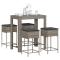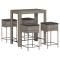 bar de jardin 5 pcs avec coussins gris poly rotinCet ensemble de bar de jardin tendance, combinant à la fois style et fonctionnalité, est sûrement destiné à être la pièce maîtresse de votre jardin, terrasse et de tout autre espace de vie. Matériau durable : la résine tressée, également connue sous le nom de poly rotin, est un matériau synthétique solide et nécessitant peu d'entretien qui ressemble au rotin naturel. Elle est légère, facile à nettoyer et couramment utilisée pour les meubles d'extérieur en raison de sa durabilité et de ses propriétés de résistance aux intempéries.Expérience d'assise confortable : ce mobilier d'extérieur, doté de coussins épais, offre une expérience d'assise confortable.Housse amovible et lavable : ces coussins de siège sont dotés de housses amovibles pour un lavage et un entretien faciles.Cadre robuste et stable : le cadre en acier enduit de poudre assure la solidité et la stabilité du meuble de jardin pour une utilisation quotidienne à l'extérieur. Bon à savoir :Pour que vos meubles d'extérieur restent beaux, nous vous recommandons de les protéger avec une housse imperméable.