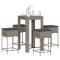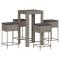 bar de jardin 5 pcs avec coussins gris poly rotinCet ensemble de bar de jardin tendance, combinant à la fois style et fonctionnalité, est sûrement destiné à être la pièce maîtresse de votre jardin, terrasse et de tout autre espace de vie. Matériau durable : la résine tressée, également connue sous le nom de poly rotin, est un matériau synthétique solide et nécessitant peu d'entretien qui ressemble au rotin naturel. Elle est légère, facile à nettoyer et couramment utilisée pour les meubles d'extérieur en raison de sa durabilité et de ses propriétés de résistance aux intempéries.Expérience d'assise confortable : ce mobilier d'extérieur, doté de coussins épais, offre une expérience d'assise confortable.Housse amovible et lavable : ces coussins de siège sont dotés de housses amovibles pour un lavage et un entretien faciles.Cadre robuste et stable : le cadre en acier enduit de poudre assure la solidité et la stabilité du meuble de jardin pour une utilisation quotidienne à l'extérieur. Bon à savoir :Pour que vos meubles d'extérieur restent beaux, nous vous recommandons de les protéger avec une housse imperméable.