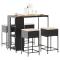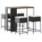 bar de jardin 5 pcs avec coussins noir poly rotinCet ensemble de bar de jardin tendance, combinant à la fois style et fonctionnalité, est sûrement destiné à être la pièce maîtresse de votre jardin, terrasse et de tout autre espace de vie. Matériau durable : la résine tressée, également connue sous le nom de poly rotin, est un matériau synthétique solide et nécessitant peu d'entretien qui ressemble au rotin naturel. Elle est légère, facile à nettoyer et couramment utilisée pour les meubles d'extérieur en raison de sa durabilité et de ses propriétés de résistance aux intempéries.Expérience d'assise confortable : ce mobilier d'extérieur, doté de coussins épais, offre une expérience d'assise confortable.Housse amovible et lavable : ces coussins de siège sont dotés de housses amovibles pour un lavage et un entretien faciles.Dessus stable et facile à nettoyer : cette table de jardin a un dessus en bois d'acacia robuste, durable et facile à nettoyer avec un chiffon humide.Cadre robuste et stable : le cadre en acier enduit de poudre assure la solidité et la stabilité du meuble de jardin pour une utilisation quotidienne à l'extérieur. Bon à savoir :Pour que vos meubles d'extérieur restent beaux, nous vous recommandons de les protéger avec une housse imperméable.