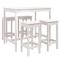 bar de jardin 5 pcs blanc bois massif de pinPrenez une gorgée de votre boisson préférée ou profitez d'un bon repas avec votre famille et vos amis autour de cet ensemble de bar de jardin en bois ! Bois de pin massif : cet ensemble de bar est fabriqué en bois de pin massif. le bois de pin massif est un matériau naturel magnifique. Le bois de pin a un grain droit et les noeuds donnent au matériau son aspect caractéristique et rustique.Dessus robuste : la table de bar de l'ensemble de pub est dotée d'un dessus robuste, parfait pour placer vos boissons, vos aliments et autres objets décoratifs.Design pratique : ces tabourets de bar en bois n'ont pas de dossier, vous pouvez donc vous asseoir confortablement de chaque côté des tabourets et les ranger sous le comptoir lorsqu'ils ne sont pas utilisés.Nombreuses applications : avec son design minimaliste, l'ensemble de bar de terrasse peut être intégré dans n'importe quel coin du jardin, terrasse, balcon, jardin, etc. Remarque :Pour que vos meubles d'extérieur restent beaux, nous vous recommandons de les protéger avec une housse imperméable. Maximum 110 kg par siège.