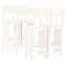 bar de jardin 5 pcs blanc bois massif de pinPrenez une gorgée de votre boisson préférée ou profitez d'un bon repas avec votre famille et vos amis autour de cet ensemble de bar de jardin en bois ! Bois de pin massif : cet ensemble de bar est fabriqué en bois de pin massif. le bois de pin massif est un matériau naturel magnifique. Le bois de pin a un grain droit et les noeuds donnent au matériau son aspect caractéristique et rustique.Dessus robuste : la table de bar de l'ensemble de pub est dotée d'un dessus robuste, parfait pour placer vos boissons, vos aliments et autres objets décoratifs.Assise confortable : le dossier et le repose-pieds du tabouret de bar en bois offrent une assise confortable pour détendre votre dos et vos jambes.Nombreuses applications : avec son design minimaliste, l'ensemble de bar de terrasse peut être intégré dans n'importe quel coin du jardin, terrasse, balcon, jardin, etc. Bon à savoir :Pour que vos meubles d'extérieur restent beaux, nous vous recommandons de les protéger avec une housse imperméable. Maximum 110 kg par siège.