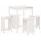 bar de jardin 5 pcs blanc bois massif de pinPrenez une gorgée de votre boisson préférée ou profitez d'un bon repas avec votre famille et vos amis autour de cet ensemble de bar de jardin en bois ! Bois de pin massif : cet ensemble de bar est fabriqué en bois de pin massif. le bois de pin massif est un matériau naturel magnifique. Le bois de pin a un grain droit et les noeuds donnent au matériau son aspect caractéristique et rustique.Dessus robuste : la table de bar de l'ensemble de pub est dotée d'un dessus robuste, parfait pour placer vos boissons, vos aliments et autres objets décoratifs.Design pratique : ces tabourets de bar en bois n'ont pas de dossier, vous pouvez donc vous asseoir confortablement de chaque côté des tabourets et les ranger sous le comptoir lorsqu'ils ne sont pas utilisés.Nombreuses applications : avec son design minimaliste, l'ensemble de bar de terrasse peut être intégré dans n'importe quel coin du jardin, terrasse, balcon, jardin, etc. Bon à savoir :Pour que vos meubles d'extérieur restent beaux, nous vous recommandons de les protéger avec une housse imperméable. Maximum 110 kg par siège.