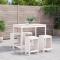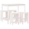 bar de jardin 5 pcs blanc bois massif de pinPrenez une gorgée de votre boisson préférée ou profitez d'un bon repas avec votre famille et vos amis autour de cet ensemble de bar de jardin en bois ! Bois de pin massif : cet ensemble de bar est fabriqué en bois de pin massif. le bois de pin massif est un matériau naturel magnifique. Le bois de pin a un grain droit et les noeuds donnent au matériau son aspect caractéristique et rustique.Dessus robuste : la table de bar de l'ensemble de pub est dotée d'un dessus robuste, parfait pour placer vos boissons, vos aliments et autres objets décoratifs.Design pratique : ces tabourets de bar en bois n'ont pas de dossier, vous pouvez donc vous asseoir confortablement de chaque côté des tabourets et les ranger sous le comptoir lorsqu'ils ne sont pas utilisés.Nombreuses applications : avec son design minimaliste, l'ensemble de bar de terrasse peut être intégré dans n'importe quel coin du jardin, terrasse, balcon, jardin, etc. Bon à savoir :Pour que vos meubles d'extérieur restent beaux, nous vous recommandons de les protéger avec une housse imperméable. Maximum 110 kg par siège.