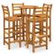 bar de jardin 5 pcs bois d'acacia solideCet ensemble de bar de jardin en bois, au design élégant et contemporain, sera un excellent choix pour manger ou vous détendre dans le jardin. Bois d'acacia massif : le bois d'acacia massif est un matériau naturel magnifique. Le bois d'acacia est un bois dur tropical, qui est dense, robuste et durable. Fabriqué en bois d'acacia massif, cet ensemble de bar convient à une utilisation intérieure et extérieure. Dessus de table robuste : cette table de bar vous offre un dessus de table solide. Vous pouvez placer vos collations, boissons et n'importe laquelle de vos décorations préférées. Expérience d'assise confortable : les dossiers et les repose-pieds offrent un confort d'assise supplémentaire.Surface facile à nettoyer : la surface à finition à l'huile rend ce mobilier de bar d'extérieur facile à nettoyer avec un chiffon humide. Remarque :Chaque produit est livré avec un manuel de montage dans la boîte pour un montage facile. Afin de prolonger la durée de vie de votre mobilier d'extérieur, nous vous recommandons de le protéger avec une housse imperméable. Maximum 110 kg par siège.
