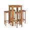 bar de jardin 5 pcs bois d'acacia solideCet ensemble de bar de jardin en bois, au design élégant et contemporain, sera un excellent choix pour manger ou vous détendre dans le jardin. Bois d'acacia massif : le bois d'acacia massif est un matériau naturel magnifique. Le bois d'acacia est un bois dur tropical, qui est dense, robuste et durable. Fabriqué en bois d'acacia massif, cet ensemble de bar convient à une utilisation intérieure et extérieure. Dessus de table robuste : cette table de bar vous offre un dessus de table solide. Vous pouvez placer vos collations, boissons et n'importe laquelle de vos décorations préférées. Expérience d'assise confortable : les repose-pieds offrent un confort d'assise supplémentaire.Surface facile à nettoyer : la surface à finition à l'huile rend ce mobilier de bar d'extérieur facile à nettoyer avec un chiffon humide. Remarque :Chaque produit est livré avec un manuel de montage dans la boîte pour un montage facile. Afin de prolonger la durée de vie de votre mobilier d'extérieur, nous vous recommandons de le protéger avec une housse imperméable. Maximum 110 kg par siège.