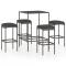 bar de jardin 5 pcs et coussins Résine tressée GrisCet élégant ensemble de bar de jardin offre un endroit agréable et confortable afin que vous puissiez profiter du temps avec votre famille et vos amis. Cette table de comptoir dispose d'un cadre en acier enduit de poudre recouvert de résine tressée résistante à l'eau, assurant des années d'utilisation à l'extérieur. De plus, le dessus de table en verre trempé facilite le nettoyage. Les tabourets ont un solide cadre en acier et sont fabriqués en résine tressée résistante aux intempéries, ce qui garantit leur stabilité et leur facilité de déplacement. Le coussin d'assise et le repose-pied intégré ajoutent également au confort d'assise du tabouret. Remarque : afin de prolonger la durée de vie des meubles d'extérieur, nous vous recommandons de les protéger avec une housse imperméable. Maximum 110 kg par siège. Soyez conscient du risque de feu ouvert et d'autres sources de forte chaleur à proximité de l'appareil.