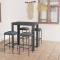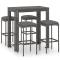 bar de jardin 5 pcs et coussins Résine tressée GrisCet ensemble élégant de bar de jardin vous permet de passer des moments agréables et confortables avec votre famille et vos amis. La table de bar est soutenue par un cadre en acier enduit de poudre, ce qui la rend stable et robuste. Le dessus de table carré est idéal pour placer des boissons, de la nourriture ou des objets décoratifs. Les tabourets ont une construction solide de cadre en acier et sont faits de résine tressée résistante aux intempéries, assurant la stabilité et sont faciles à déplacer. Le coussin et le repose-pied ajoutent également du confort d'assise supplémentaire au tabouret. La housse de coussin en polyester avec fermeture éclair dissimulée le rend facile à nettoyer. Maximum 110 kg par siège. Soyez conscient du risque de feu ouvert et d'autres sources de forte chaleur à proximité de l'appareil.