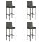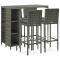 bar de jardin 5 pcs et coussins Résine tressée GrisCet ensemble de bar de jardin a un design élégant et sera le point de mire de votre jardin, patio ou terrasse. Fabriqué en résine tressée résistante aux intempéries et imperméable, cet ensemble de bar est facile à nettoyer, résistant à l'usure et adapté à une utilisation quotidienne. Le cadre en acier enduit de poudre rend la table et les tabourets très robustes et durables. Grace à la construction légère, tous les articles sont faciles à déplacer. Les coussins de siège amovibles et épais sont très confortables. Les housses des coussins avec fermetures éclair peuvent être facilement enlevées et lavées. Remarque : nous vous recommandons de couvrir l'ensemble pendant la pluie, la neige et le gel. Maximum 110 kg par siège. Soyez conscient du risque de feu ouvert et d'autres sources de forte chaleur à proximité de l'appareil.