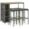 bar de jardin 5 pcs et coussins Résine tressée GrisCet ensemble de bar de jardin a un design élégant et sera le point de mire de votre jardin, patio ou terrasse. Fabriqué en résine tressée résistante aux intempéries et imperméable, cet ensemble de bar est facile à nettoyer, résistant à l'usure et adapté à une utilisation quotidienne. Le cadre en acier enduit de poudre rend la table et les tabourets très robustes et durables. Grace à la construction légère, tous les articles sont faciles à déplacer. Les coussins de siège amovibles et épais sont très confortables. Les housses des coussins avec fermetures éclair peuvent être facilement enlevées et lavées. Remarque : nous recommandons de couvrir l'ensemble pendant la pluie, la neige et le gel. Maximum 110 kg par siège. Soyez conscient du risque de feu ouvert et d'autres sources de forte chaleur à proximité de l'appareil.