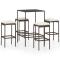 bar de jardin 5 pcs coussins Résine tressée MarronCet élégant ensemble de bar de jardin offre un endroit agréable et confortable afin que vous puissiez profiter du temps avec votre famille et vos amis. Cette table de comptoir dispose d'un cadre en acier enduit de poudre recouvert de résine tressée résistante à l'eau, assurant des années d'utilisation à l'extérieur. De plus, le dessus de table en verre trempé facilite le nettoyage. Les tabourets ont un solide cadre en acier et sont fabriqués en résine tressée résistante aux intempéries, ce qui garantit leur stabilité et leur facilité de déplacement. Le coussin d'assise et le repose-pied intégré ajoutent également au confort d'assise du tabouret. Remarque : afin de prolonger la durée de vie des meubles d'extérieur, nous vous recommandons de les protéger avec une housse imperméable. Maximum 110 kg par siège. Soyez conscient du risque de feu ouvert et d'autres sources de forte chaleur à proximité de l'appareil.