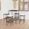 bar de jardin 5 pcs et coussins Résine tressée NoirCet élégant ensemble de bar de jardin offre un endroit agréable et confortable afin que vous puissiez profiter du temps avec votre famille et vos amis. Cette table de comptoir dispose d'un cadre en acier enduit de poudre recouvert de résine tressée résistante à l'eau, assurant des années d'utilisation à l'extérieur. De plus, le dessus de table en verre trempé facilite le nettoyage. Les tabourets ont un solide cadre en acier et sont fabriqués en résine tressée résistante aux intempéries, ce qui garantit leur stabilité et leur facilité de déplacement. Le coussin d'assise et le repose-pied intégré ajoutent également au confort d'assise du tabouret. Remarque : afin de prolonger la durée de vie des meubles d'extérieur, nous vous recommandons de les protéger avec une housse imperméable. Maximum 110 kg par siège. Soyez conscient du risque de feu ouvert et d'autres sources de forte chaleur à proximité de l'appareil.