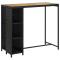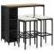 bar de jardin 5 pcs et coussins Résine tressée NoirCet ensemble de bar de jardin a un design élégant et sera le point de mire de votre jardin, patio ou terrasse. Fabriqué en résine tressée résistante aux intempéries et imperméable, cet ensemble de bar est facile à nettoyer, résistant à l'usure et adapté à une utilisation quotidienne. Le cadre en acier enduit de poudre rend la table et les tabourets très robustes et durables. Grace à la construction légère, tous les articles sont faciles à déplacer. Les coussins de siège amovibles et épais sont très confortables. Les housses des coussins avec fermetures éclair peuvent être facilement enlevées et lavées. Remarque : nous recommandons de couvrir l'ensemble pendant la pluie, la neige et le gel. Maximum 110 kg par siège. Soyez conscient du risque de feu ouvert et d'autres sources de forte chaleur à proximité de l'appareil.