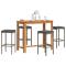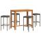bar de jardin 5 pcs gris bois massif acacia rotinCet ensemble de bar de jardin, au design élégant et contemporain, sera un excellent choix pour manger ou vous détendre dans le jardin. Matériau durable : la résine tressée, également connue sous le nom de poly rotin, est un matériau synthétique solide et nécessitant peu d'entretien qui ressemble au rotin naturel. Elle est légère, facile à nettoyer et couramment utilisée pour les produits d'extérieur en raison de sa durabilité et de ses propriétés de résistance aux intempéries. Fabriqués en résine tressée légère, ces tabourets de bar sont robustes et faciles à déplacer. Plateau de table robuste : le bois d'acacia massif est un beau matériau naturel. Le bois d'acacia est un bois dur tropical, dense, robuste et durable. Fabriquée en bois d'acacia massif, cette table de bar est robuste et stable. Vous pouvez y placer collations, boissons et toutes vos décorations préférées. Expérience d'assise confortable : les coussins d'assise bien rembourrés et les repose-pieds intégrés ajoutent un confort d'assise supplémentaire pour le tabouret. Housse amovible et lavable : ces coussins de siège sont dotés de housses amovibles pour un lavage et un entretien faciles. Bon à savoir :Pour que vos meubles d'extérieur restent beaux, nous vous recommandons de les protéger avec une housse imperméable. Maximum 110 kg par siège. Soyez conscient du risque de feu ouvert et d'autres sources de forte chaleur à proximité de l'appareil.