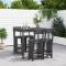 bar de jardin 5 pcs gris bois de pin massifPrenez une gorgée de votre boisson préférée ou profitez d'un bon repas avec votre famille et vos amis autour de cet ensemble de bar de jardin en bois ! Bois de pin massif : cet ensemble de bar est fabriqué en bois de pin massif. le bois de pin massif est un matériau naturel magnifique. Le bois de pin a un grain droit et les noeuds donnent au matériau son aspect caractéristique et rustique.Dessus robuste : la table de bar de l'ensemble de pub est dotée d'un dessus robuste, parfait pour placer vos boissons, vos aliments et autres objets décoratifs.Assise confortable : le dossier et le repose-pieds du tabouret de bar en bois offrent une assise confortable pour détendre votre dos et vos jambes.Nombreuses applications : avec son design minimaliste, l'ensemble de bar de terrasse peut être intégré dans n'importe quel coin du jardin, terrasse, balcon, jardin, etc. Bon à savoir :Pour que vos meubles d'extérieur restent beaux, nous vous recommandons de les protéger avec une housse imperméable. Maximum 110 kg par siège.
