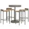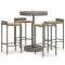 bar jardin 5 pcs gris poly rotin/bois massif acaciaCet ensemble de bar de jardin tendance, combinant à la fois style et fonctionnalité, est sûrement destiné à être la pièce maîtresse de votre jardin, terrasse et de tout autre espace de vie. Matériau résistant aux intempéries : la résine tressée, également connue sous le nom de rotin poly, résiste aux intempéries et est facile à nettoyer. Elle reste belle à l'extérieur pendant une longue période. Elle offre une excellente qualité, commodité et un aspect esthétique.Assise confortable : le tabouret de bar est conçu avec un repose-pied intégré pour vous offrir une expérience d'assise confortable. L'assise en bois confère au tabouret un aspect naturel et agréable tout en assurant sa stabilité.Table pratique : la table de bar ronde est idéale pour accueillir vos boissons, vos snacks et vos décorations préférées.Cadre robuste et stable : les cadres en acier enduit de poudre rendent l'ensemble de pub robuste et stable pour une utilisation quotidienne à l'extérieur.Applications larges : la table et les tabourets de bar, avec leur design remarquable, créent un aspect général agréable qui s'intègre sans effort dans n'importe quel décor. Bon à savoir :Pour faciliter au maximum le montage, chaque produit est livré avec des instructions.Remarque :Pour que vos meubles d'extérieur restent beaux, nous vous recommandons de les protéger avec une housse imperméable. Maximum 110 kg par siège.