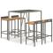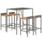 bar jardin 5 pcs gris poly rotin/bois massif acaciaCet ensemble de bar de jardin tendance, combinant à la fois style et fonctionnalité, est sûrement destiné à être la pièce maîtresse de votre jardin, terrasse et de tout autre espace de vie. Matériau résistant aux intempéries : la résine tressée, également connue sous le nom de rotin poly, résiste aux intempéries et est facile à nettoyer. Elle reste belle à l'extérieur pendant une longue période. Elle offre une excellente qualité, commodité et un aspect esthétique.Assise confortable : le tabouret de bar est conçu avec un repose-pied intégré pour vous offrir une expérience d'assise confortable. L'assise en bois confère au tabouret un aspect naturel et agréable tout en assurant sa stabilité.Dessus en verre trempé : le dessus est en verre trempé, ce qui le rend facile à nettoyer. De plus, il est idéal pour placer vos boissons, collations et vos décorations préférées.Cadre robuste et stable : les cadres en acier enduit de poudre rendent l'ensemble de pub robuste et stable pour une utilisation quotidienne à l'extérieur.Applications larges : la table et les tabourets de bar, avec leur design remarquable, créent un aspect général agréable qui s'intègre sans effort dans n'importe quel décor. Bon à savoir :Pour faciliter au maximum le montage, chaque produit est livré avec des instructions.Remarque :Pour que vos meubles d'extérieur restent beaux, nous vous recommandons de les protéger avec une housse imperméable. Maximum 110 kg par siège.