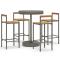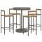 bar jardin 5 pcs gris poly rotin/bois massif acaciaCet ensemble de bar de jardin tendance, combinant à la fois style et fonctionnalité, est sûrement destiné à être la pièce maîtresse de votre jardin, terrasse et de tout autre espace de vie. Matériau résistant aux intempéries : la résine tressée, également connue sous le nom de rotin poly, résiste aux intempéries et est facile à nettoyer. Elle reste belle à l'extérieur pendant une longue période. Elle offre une excellente qualité, commodité et un aspect esthétique.Assise confortable : le tabouret de bar est conçu avec un repose-pied intégré pour vous offrir une expérience d'assise confortable. L'assise en bois confère au tabouret un aspect naturel et agréable tout en assurant sa stabilité.Table pratique : la table de bar ronde est idéale pour accueillir vos boissons, vos snacks et vos décorations préférées.Cadre robuste et stable : les cadres en acier enduit de poudre rendent l'ensemble de pub robuste et stable pour une utilisation quotidienne à l'extérieur.Applications larges : la table et les tabourets de bar, avec leur design remarquable, créent un aspect général agréable qui s'intègre sans effort dans n'importe quel décor. Bon à savoir :Pour faciliter au maximum le montage, chaque produit est livré avec des instructions.Remarque :Pour que vos meubles d'extérieur restent beaux, nous vous recommandons de les protéger avec une housse imperméable. Maximum 110 kg par siège.