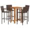 bar de jardin 5 pcs marron bois massif acacia rotinCet ensemble de bar de jardin, au design élégant et contemporain, sera un excellent choix pour manger ou vous détendre dans le jardin. Matériau durable : la résine tressée, également connue sous le nom de poly rotin, est un matériau synthétique solide et nécessitant peu d'entretien qui ressemble au rotin naturel. Elle est légère, facile à nettoyer et couramment utilisée pour les produits d'extérieur en raison de sa durabilité et de ses propriétés de résistance aux intempéries. Fabriqués en résine tressée légère, ces tabourets de bar sont robustes et faciles à déplacer. Plateau de table robuste : le bois d'acacia massif est un beau matériau naturel. Le bois d'acacia est un bois dur tropical, dense, robuste et durable. Fabriquée en bois d'acacia massif, cette table de bar est robuste et stable. Vous pouvez y placer collations, boissons et toutes vos décorations préférées. Expérience d'assise confortable : les repose-pieds intégrés ajoutent un confort d'assise supplémentaire pour le tabouret. Bon à savoir :Pour que vos meubles d'extérieur restent beaux, nous vous recommandons de les protéger avec une housse imperméable. Maximum 110 kg par siège.