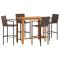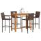 Ensemble de bar de jardin 5 pcs marron bois massif acacia rotinCet ensemble de bar de jardin, au design élégant et contemporain, sera un excellent choix pour manger ou vous détendre dans le jardin. Matériau durable : la résine tressée, également connue sous le nom de poly rotin, est un matériau synthétique solide et nécessitant peu d'entretien qui ressemble au rotin naturel. Elle est légère, facile à nettoyer et couramment utilisée pour les produits d'extérieur en raison de sa durabilité et de ses propriétés de résistance aux intempéries. Fabriqués en résine tressée légère, ces tabourets de bar sont robustes et faciles à déplacer. Plateau de table robuste : le bois d'acacia massif est un beau matériau naturel. Le bois d'acacia est un bois dur tropical, dense, robuste et durable. Fabriquée en bois d'acacia massif, cette table de bar est robuste et stable. Vous pouvez y placer collations, boissons et toutes vos décorations préférées. Expérience d'assise confortable : les repose-pieds intégrés ajoutent un confort d'assise supplémentaire pour le tabouret. Bon à savoir : Pour que vos meubles d'extérieur restent beaux, nous vous recommandons de les protéger avec une housse imperméable. Maximum 110 kg par siège. ,