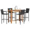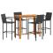 bar de jardin 5 pcs noir bois massif acacia rotin alsavelo