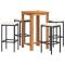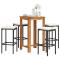 bar de jardin 5 pcs noir bois massif acacia rotinCet ensemble de bar de jardin, au design élégant et contemporain, sera un excellent choix pour manger ou vous détendre dans le jardin. Matériau durable : la résine tressée, également connue sous le nom de poly rotin, est un matériau synthétique solide et nécessitant peu d'entretien qui ressemble au rotin naturel. Elle est légère, facile à nettoyer et couramment utilisée pour les produits d'extérieur en raison de sa durabilité et de ses propriétés de résistance aux intempéries. Fabriqués en résine tressée légère, ces tabourets de bar sont robustes et faciles à déplacer. Plateau de table robuste : le bois d'acacia massif est un beau matériau naturel. Le bois d'acacia est un bois dur tropical, dense, robuste et durable. Fabriquée en bois d'acacia massif, cette table de bar est robuste et stable. Vous pouvez y placer collations, boissons et toutes vos décorations préférées. Expérience d'assise confortable : les coussins d'assise bien rembourrés et les repose-pieds intégrés ajoutent un confort d'assise supplémentaire pour le tabouret. Housse amovible et lavable : ces coussins de siège sont dotés de housses amovibles pour un lavage et un entretien faciles. Bon à savoir :Pour que vos meubles d'extérieur restent beaux, nous vous recommandons de les protéger avec une housse imperméable. Maximum 110 kg par siège. Soyez conscient du risque de feu ouvert et d'autres sources de forte chaleur à proximité de l'appareil.