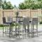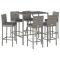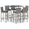 bar de jardin 7 pcs avec coussins gris poly rotinCet ensemble de bar de jardin tendance, combinant à la fois style et fonctionnalité, est sûrement destiné à être la pièce maîtresse de votre jardin, terrasse et de tout autre espace de vie. Matériau résistant aux intempéries : la résine tressée, également connue sous le nom de rotin poly, résiste aux intempéries et est facile à nettoyer. Elle reste belle à l'extérieur pendant une longue période. Elle offre une excellente qualité, commodité et un aspect esthétique.Assise confortable : le tabouret de bar est conçu avec un dossier et un repose-pieds intégré pour vous offrir une assise confortable. Le coussin de siège bien rembourré offre un confort ultime pendant votre temps assis.Dessus en verre trempé : le dessus est en verre trempé, ce qui le rend facile à nettoyer. De plus, il offre un excellent support pour placer vos boissons, collations et vos décorations préférées.Cadre robuste et stable : les cadres en acier enduit de poudre rendent l'ensemble de pub robuste et stable pour une utilisation quotidienne à l'extérieur.Applications larges : la table et le tabouret de bar, avec leur design remarquable, créent un aspect général agréable qui s'intègre sans effort dans n'importe quel décor. Bon à savoir :Pour faciliter au maximum le montage, chaque produit est livré avec des instructions.Remarque :Pour que vos meubles d'extérieur restent beaux, nous vous recommandons de les protéger avec une housse imperméable. Maximum 110 kg par siège. Soyez conscient du risque de feu ouvert et d'autres sources de forte chaleur à proximité de l'appareil.