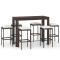 bar de jardin 7 pcs coussins Résine tressée MarronCet ensemble élégant de bar de jardin vous permet de passer des moments agréables et confortables avec votre famille et vos amis. La table de bar est soutenue par un cadre en acier enduit de poudre, ce qui la rend stable et robuste. Le dessus de table est idéal pour placer des boissons, de la nourriture ou des objets décoratifs. Les tabourets ont une construction solide de cadre en acier et sont faits de résine tressée résistante aux intempéries, assurant la stabilité et sont faciles à déplacer. Le coussin et le repose-pied ajoutent également du confort d'assise supplémentaire au tabouret. La housse de coussin en polyester avec fermeture éclair dissimulée la rend facile à nettoyer. Maximum 110 kg par siège. Soyez conscient du risque de feu ouvert et d'autres sources de forte chaleur à proximité de l'appareil.