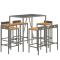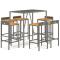 bar jardin 7 pcs gris poly rotin/bois massif acaciaCet ensemble de bar de jardin tendance, combinant à la fois style et fonctionnalité, est sûrement destiné à être la pièce maîtresse de votre jardin, terrasse et de tout autre espace de vie. Matériau résistant aux intempéries : la résine tressée, également connue sous le nom de rotin poly, résiste aux intempéries et est facile à nettoyer. Elle reste belle à l'extérieur pendant une longue période. Elle offre une excellente qualité, commodité et un aspect esthétique.Assise confortable : le tabouret de bar est conçu avec un repose-pied intégré pour vous offrir une expérience d'assise confortable. L'assise en bois confère au tabouret un aspect naturel et agréable tout en assurant sa stabilité.Dessus en verre trempé : le dessus est en verre trempé, ce qui le rend facile à nettoyer. De plus, il est idéal pour placer vos boissons, collations et vos décorations préférées.Cadre robuste et stable : les cadres en acier enduit de poudre rendent l'ensemble de pub robuste et stable pour une utilisation quotidienne à l'extérieur.Applications larges : la table et les tabourets de bar, avec leur design remarquable, créent un aspect général agréable qui s'intègre sans effort dans n'importe quel décor. Bon à savoir :Pour faciliter au maximum le montage, chaque produit est livré avec des instructions.Remarque :Pour que vos meubles d'extérieur restent beaux, nous vous recommandons de les protéger avec une housse imperméable. Maximum 110 kg par siège.