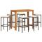 bar de jardin 7 pcs marron bois massif acacia rotinCet ensemble de bar de jardin, au design élégant et contemporain, sera un excellent choix pour manger ou vous détendre dans le jardin. Matériau durable : la résine tressée, également connue sous le nom de poly rotin, est un matériau synthétique solide et nécessitant peu d'entretien qui ressemble au rotin naturel. Elle est légère, facile à nettoyer et couramment utilisée pour les produits d'extérieur en raison de sa durabilité et de ses propriétés de résistance aux intempéries. Fabriqués en résine tressée légère, ces tabourets de bar sont robustes et faciles à déplacer. Plateau de table robuste : le bois d'acacia massif est un beau matériau naturel. Le bois d'acacia est un bois dur tropical, dense, robuste et durable. Fabriquée en bois d'acacia massif, cette table de bar est robuste et stable. Vous pouvez y placer collations, boissons et toutes vos décorations préférées. Expérience d'assise confortable : les coussins d'assise bien rembourrés et les repose-pieds intégrés ajoutent un confort d'assise supplémentaire pour le tabouret. Housse amovible et lavable : ces coussins de siège sont dotés de housses amovibles pour un lavage et un entretien faciles. Bon à savoir :Pour que vos meubles d'extérieur restent beaux, nous vous recommandons de les protéger avec une housse imperméable. Maximum 110 kg par siège. Soyez conscient du risque de feu ouvert et d'autres sources de forte chaleur à proximité de l'appareil.