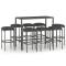 bar de jardin 9 pcs et coussins Résine tressée GrisCet élégant ensemble de bar de jardin offre un endroit agréable et confortable afin que vous puissiez profiter du temps avec votre famille et vos amis. Cette table de comptoir dispose d'un cadre en acier enduit de poudre recouvert de résine tressée résistante à l'eau, assurant des années d'utilisation à l'extérieur. De plus, le dessus de table en verre trempé facilite le nettoyage. Les tabourets ont un solide cadre en acier et sont fabriqués en résine tressée résistante aux intempéries, ce qui garantit leur stabilité et leur facilité de déplacement. Le coussin d'assise et le repose-pied intégré ajoutent également au confort d'assise du tabouret. Remarque : afin de prolonger la durée de vie des meubles d'extérieur, nous vous recommandons de les protéger avec une housse imperméable. Maximum 110 kg par siège. Soyez conscient du risque de feu ouvert et d'autres sources de forte chaleur à proximité de l'appareil.