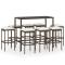 bar de jardin 9 pcs coussins Résine tressée MarronCet élégant ensemble de bar de jardin offre un endroit agréable et confortable afin que vous puissiez profiter du temps avec votre famille et vos amis. Cette table de comptoir dispose d'un cadre en acier enduit de poudre recouvert de résine tressée résistante à l'eau, assurant des années d'utilisation à l'extérieur. De plus, le dessus de table en verre trempé facilite le nettoyage. Les tabourets ont un solide cadre en acier et sont fabriqués en résine tressée résistante aux intempéries, ce qui garantit leur stabilité et leur facilité de déplacement. Le coussin d'assise et le repose-pied intégré ajoutent également au confort d'assise du tabouret. Remarque : afin de prolonger la durée de vie des meubles d'extérieur, nous vous recommandons de les protéger avec une housse imperméable. Maximum 110 kg par siège. Soyez conscient du risque de feu ouvert et d'autres sources de forte chaleur à proximité de l'appareil.