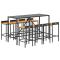 bar jardin 9 pcs noir poly rotin/bois massif acaciaCet ensemble de bar de jardin tendance, combinant à la fois style et fonctionnalité, est sûrement destiné à être la pièce maîtresse de votre jardin, terrasse et de tout autre espace de vie. Matériau résistant aux intempéries : la résine tressée, également connue sous le nom de rotin poly, résiste aux intempéries et est facile à nettoyer. Elle reste belle à l'extérieur pendant une longue période. Elle offre une excellente qualité, commodité et un aspect esthétique.Assise confortable : le tabouret de bar est conçu avec un repose-pied intégré pour vous offrir une expérience d'assise confortable. L'assise en bois confère au tabouret un aspect naturel et agréable tout en assurant sa stabilité.Dessus en verre trempé : le dessus est en verre trempé, ce qui le rend facile à nettoyer. De plus, il est idéal pour placer vos boissons, collations et vos décorations préférées.Cadre robuste et stable : les cadres en acier enduit de poudre rendent l'ensemble de pub robuste et stable pour une utilisation quotidienne à l'extérieur.Applications larges : la table et les tabourets de bar, avec leur design remarquable, créent un aspect général agréable qui s'intègre sans effort dans n'importe quel décor. Bon à savoir :Pour faciliter au maximum le montage, chaque produit est livré avec des instructions.Remarque :Pour que vos meubles d'extérieur restent beaux, nous vous recommandons de les protéger avec une housse imperméable. Maximum 110 kg par siège.