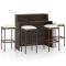 bar de jardin avec coussins 5 pcs MarronCet ensemble de bar de jardin a un design élégant et sera le point de mire de votre jardin, patio ou terrasse. Fabriqué en résine tressée résistante aux intempéries et imperméable, cet ensemble de bar est facile à nettoyer, résistant à l'usure et adapté à une utilisation quotidienne. Le cadre en acier enduit de poudre rend la table et les tabourets très robustes et durables. Grace à la construction légère, tous les articles sont faciles à déplacer. Les coussins de siège amovibles et épais sont très confortables. Les housses des coussins avec fermetures éclair peuvent être facilement enlevées et lavées. Remarque : afin de prolonger la durée de vie des meubles d'extérieur, nous vous recommandons de les protéger avec une housse imperméable. Maximum 110 kg par siège. Soyez conscient du risque de feu ouvert et d'autres sources de forte chaleur à proximité de l'appareil.