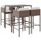 bar de jardin avec coussins 5 pcs marron poly rotinCet ensemble de bar de jardin tendance, combinant à la fois style et fonctionnalité, est sûrement destiné à être la pièce maîtresse de votre jardin, terrasse et de tout autre espace de vie. Matériau résistant aux intempéries : la résine tressée, également connue sous le nom de rotin poly, résiste aux intempéries et est facile à nettoyer. Elle reste belle à l'extérieur pendant une longue période. Elle offre une excellente qualité, commodité et un aspect esthétique.Siège confortable : le tabouret de bar est conçu avec un repose-pied, un dossier et des accoudoirs pour vous offrir une expérience d'assise confortable. Les coussins souples du siège et du dossier ajoutent encore au confort.Dessus en verre trempé : le dessus est en verre trempé, ce qui le rend facile à nettoyer. De plus, il offre un excellent support pour placer vos boissons, collations et vos décorations préférées.Cadre robuste et stable : les cadres en acier enduit de poudre rendent l'ensemble de pub robuste et stable pour une utilisation quotidienne à l'extérieur.Applications larges : la table et les tabourets de bar, avec leur design remarquable, créent un aspect général agréable qui s'intègre sans effort dans n'importe quel décor. Bon à savoir :Pour que vos meubles d'extérieur restent beaux, nous vous recommandons de les protéger avec une housse imperméable. Maximum 110 kg par siège. Soyez conscient du risque de feu ouvert et d'autres sources de forte chaleur à proximité de l'appareil.
