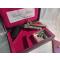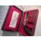 dans une casette 22.5 x 15 x 5.5 doublée de tissus rouge , avec etiquette armurier et casiers pour accessoires